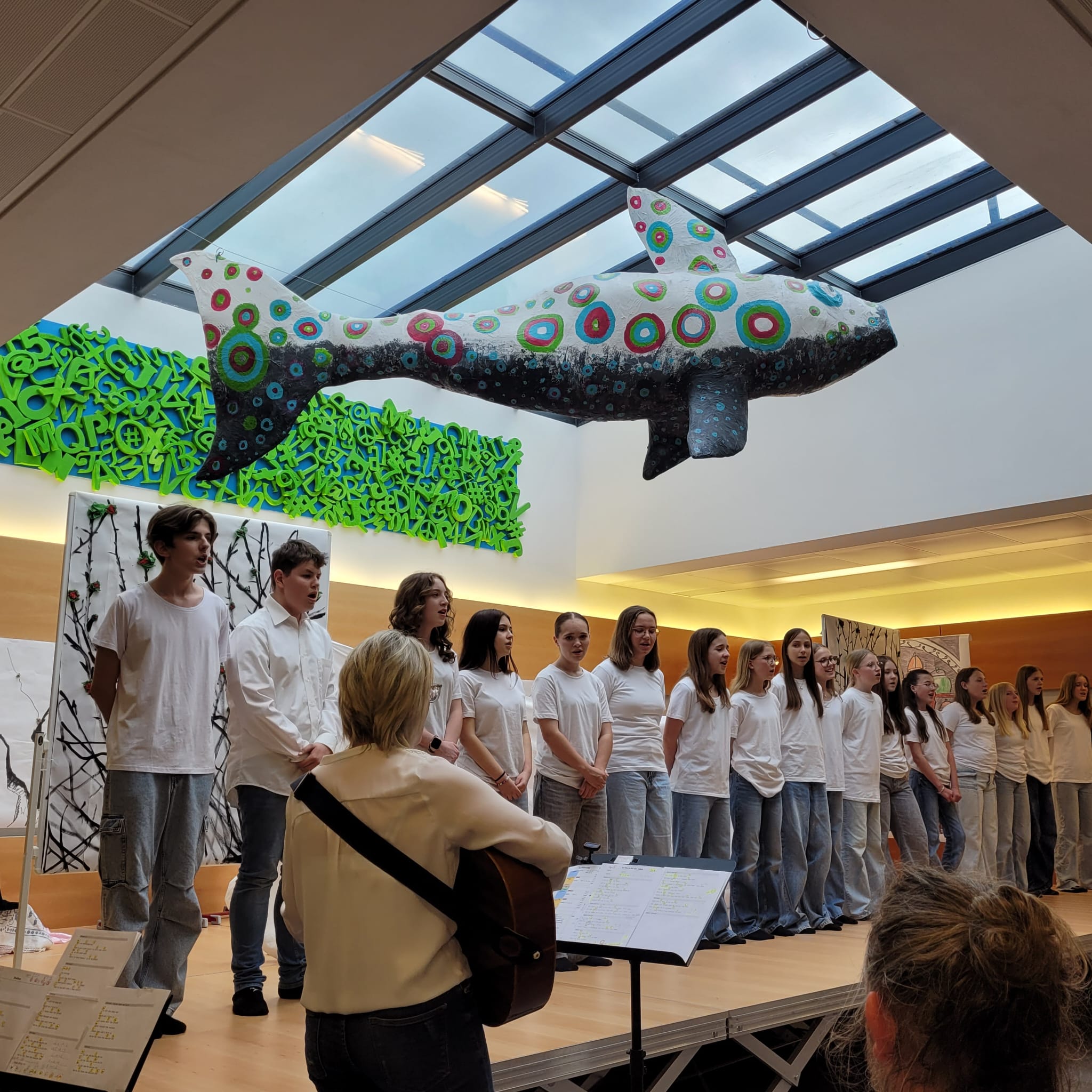 So beeisterten die Schülerinnen der MUSI4 Gruppe mit einem selbst einstudierten Tanz, einem Line-Dace, einem Solo von Azra Kaya, einer selbst verfassten, musikalisch begleiteten Fantasiereise und einem Streifzug aus aktuellen Hits ihr Publikum.