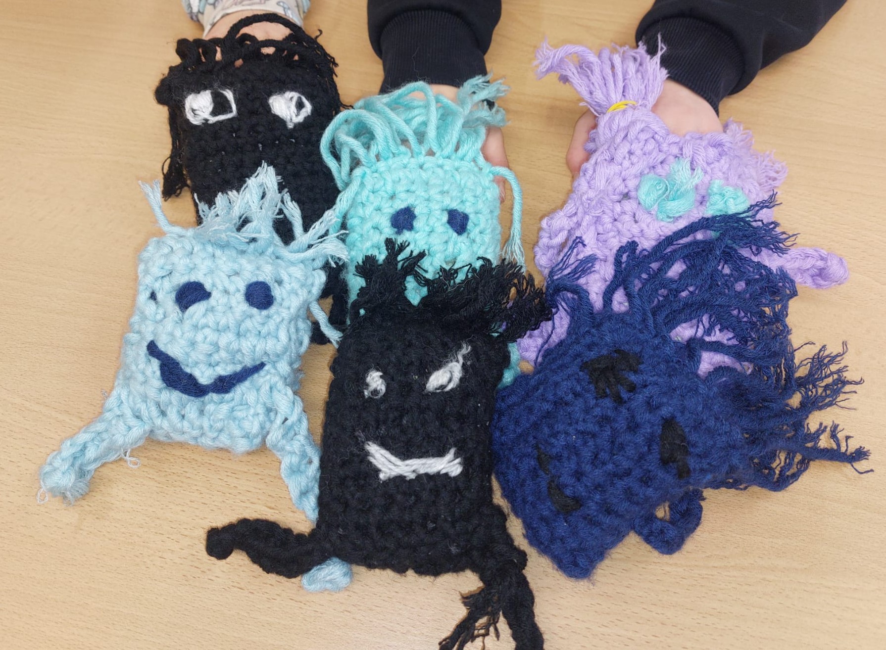 Diese gehäkelten Wurfobjekte sind alles andere als gewöhnlich: Jedes hat sein eigenes Gesicht, seinen eigenen Ausdruck - und manchmal sogar eine kleine Grimasse. Mit viel Kreativität, Geduld und einer Portion Humor entstanden im textilen Werkunterricht diese weichen Figuren, die man nicht nur anschauen, sondern auch gefahrlos werfen darf. Ob fröhlich, frech oder ein bisschen grummelig - langweilig wird es mit ihnen bestimmt nicht!